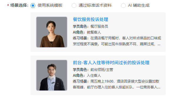 1、陪练剧本生成可使用三种方式